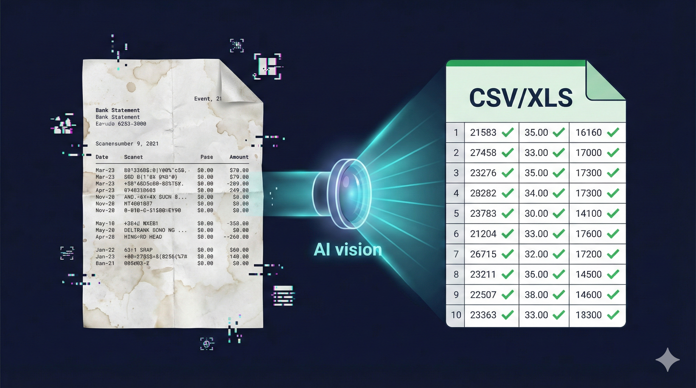 Traditional OCR failing on your scanned bank statement? Vision AI recovers data from coffee stains, faded text, and crumpled documents.