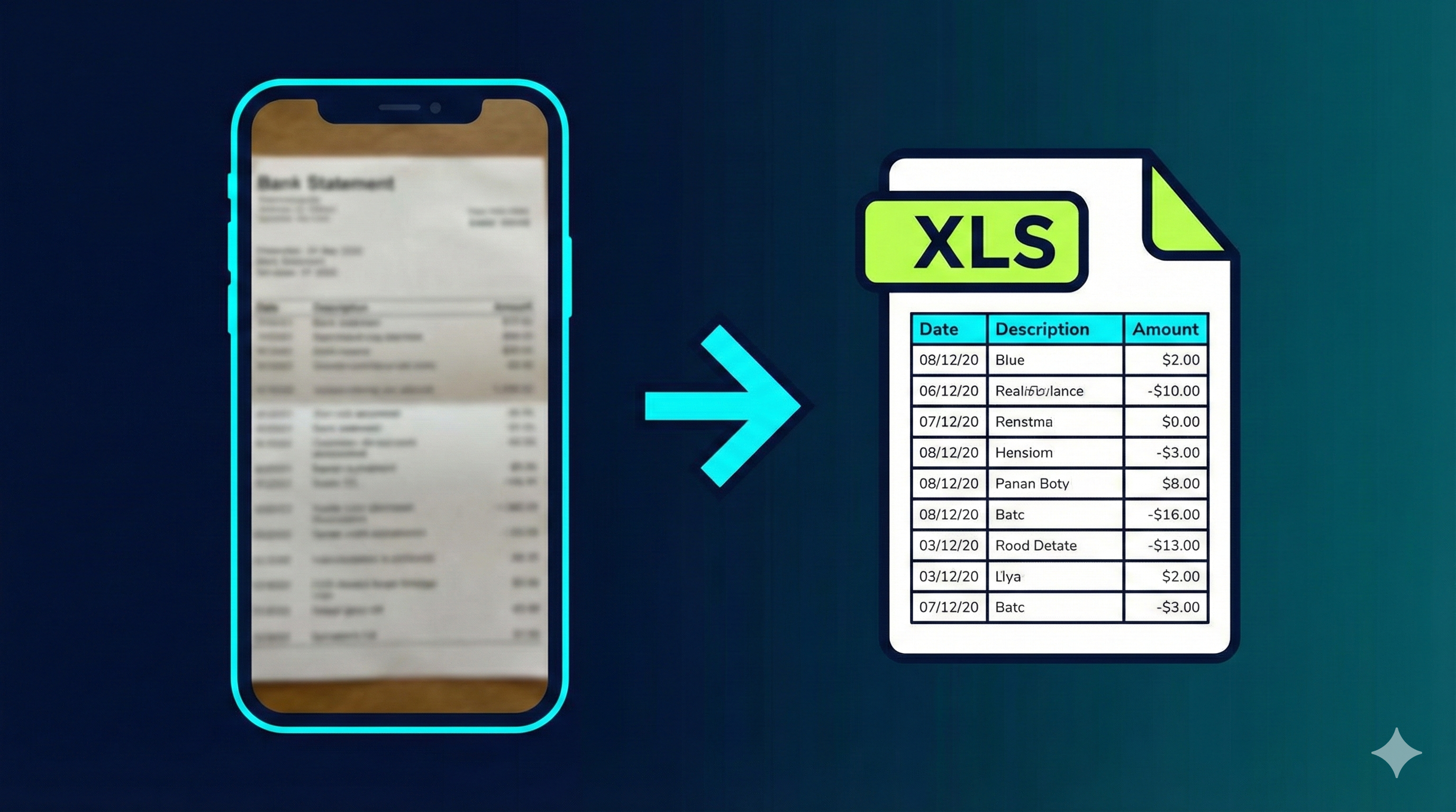 Turn crumpled, blurry bank statement photos into clean Excel files in seconds. No retyping. Vision-powered OCR extracts data even from poor-quality images.